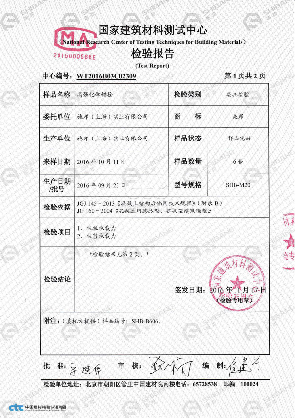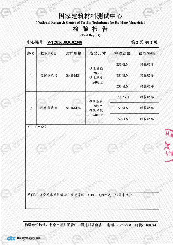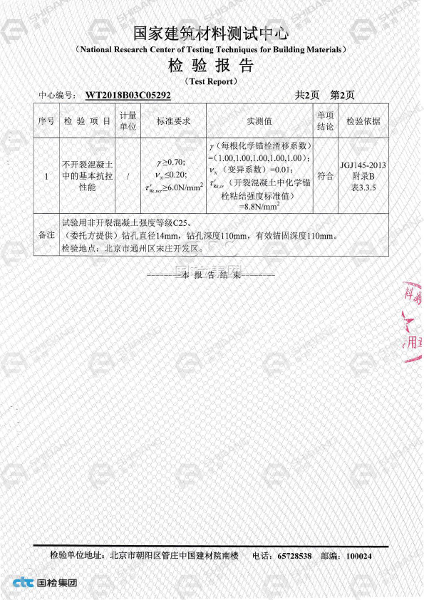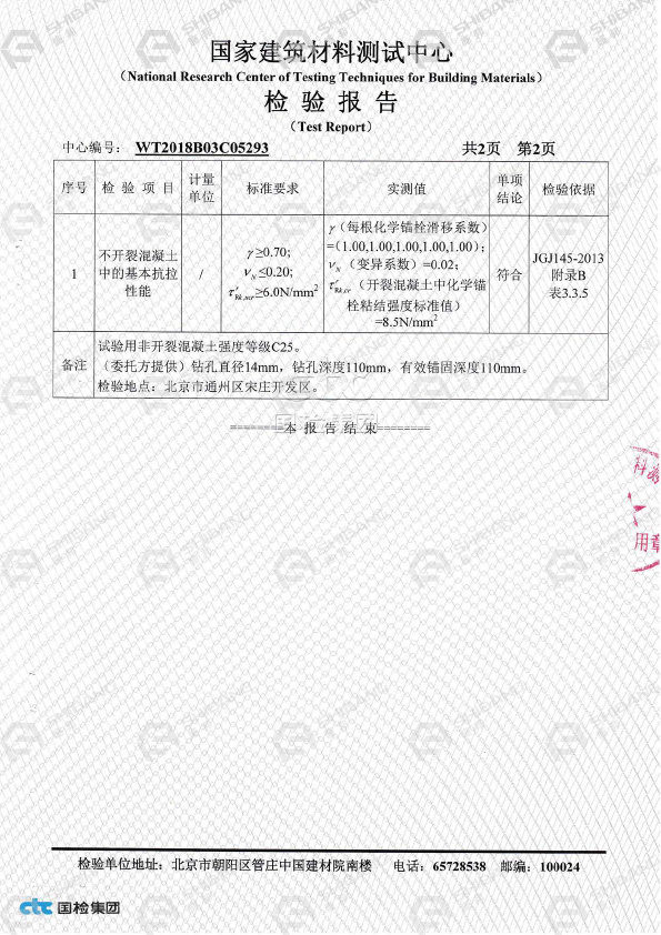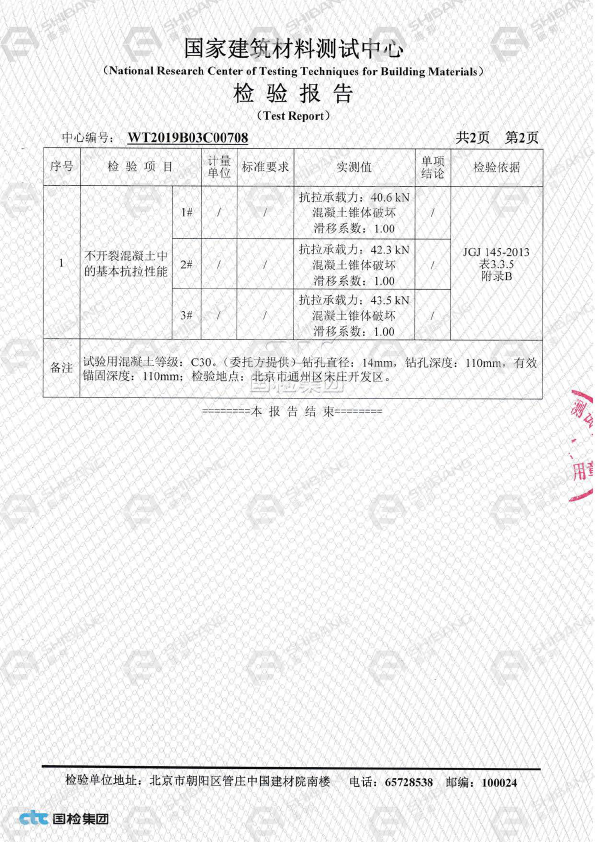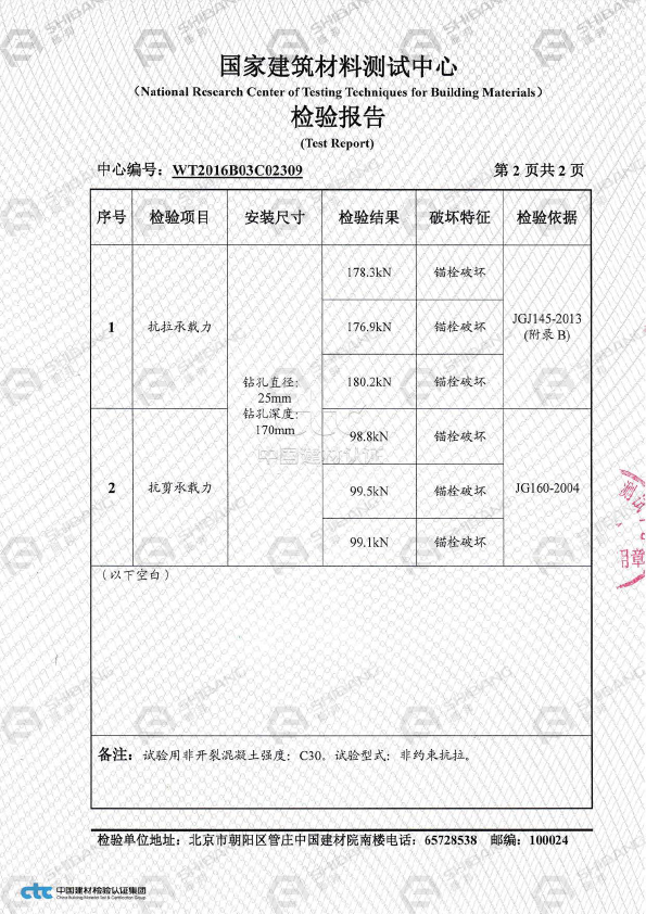 表格未列出的產品,請參照《JGJ145-2013混凝土結構后錨固技術規程》按照承載力極限狀態計算方式得出相應數據,具體方案請咨詢施邦 (上海) 實業有限公司技術部