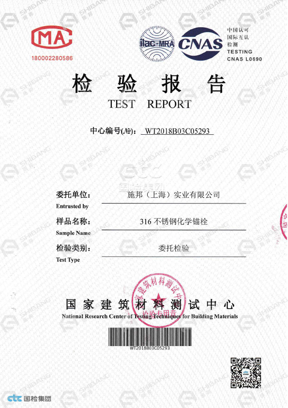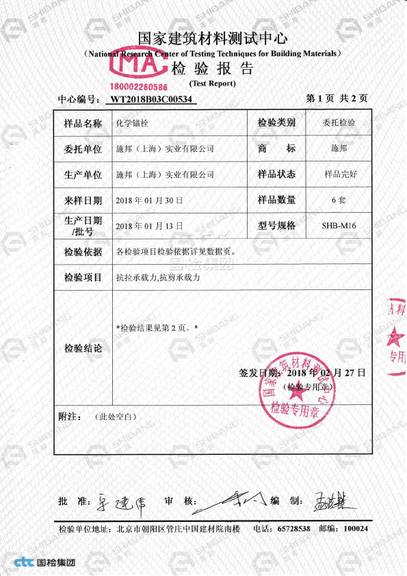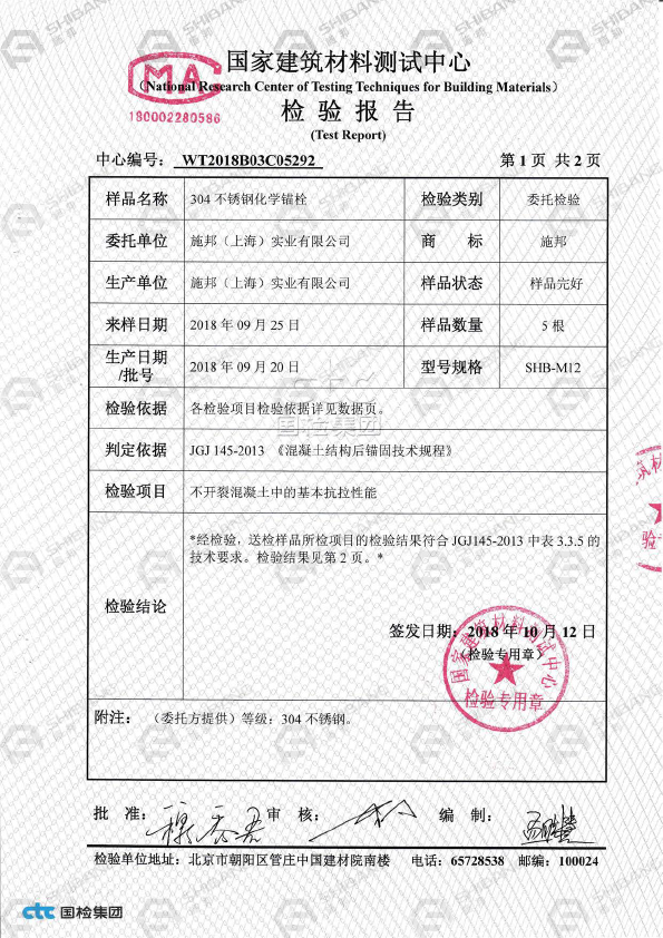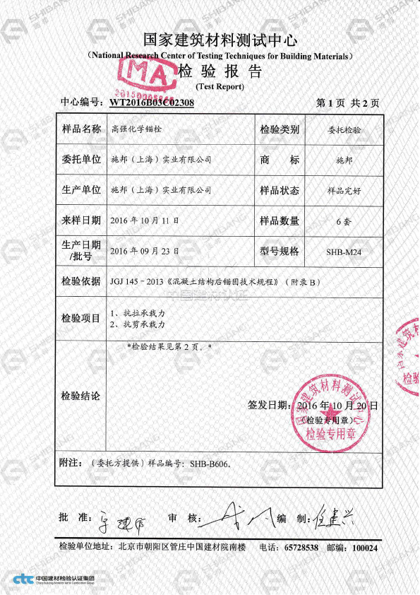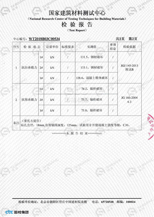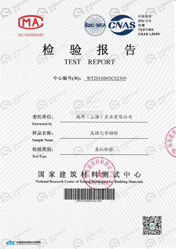 表格未列出的產品,請參照《JGJ145-2013混凝土結構后錨固技術規程》按照承載力極限狀態計算方式得出相應數據,具體方案請咨詢施邦 (上海) 實業有限公司技術部