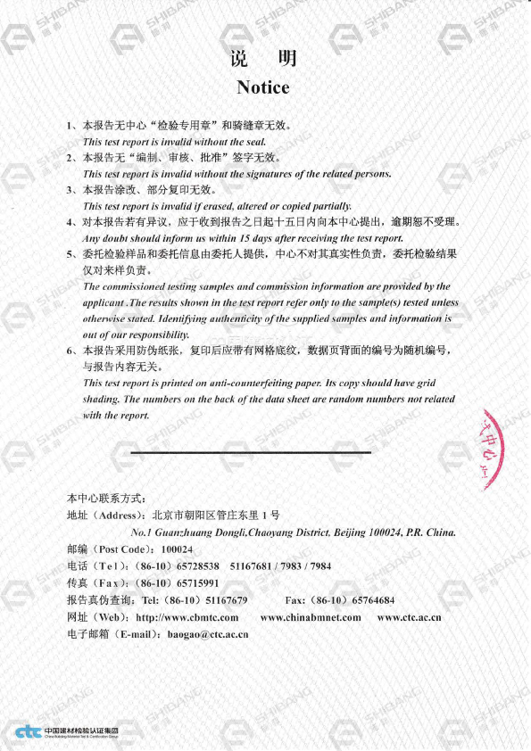 產品不僅通過了《我國建筑材料測試中心》檢測