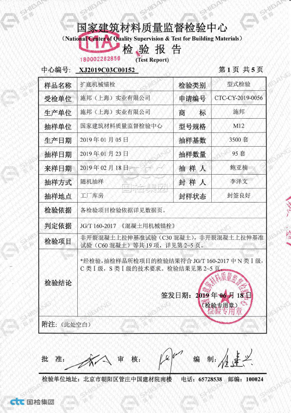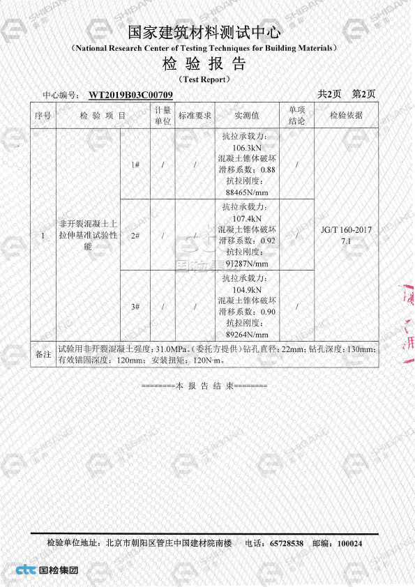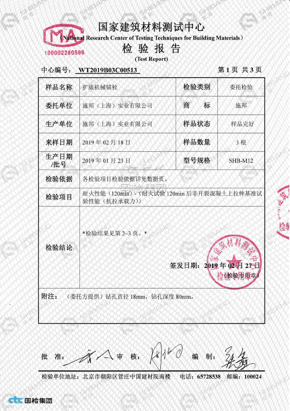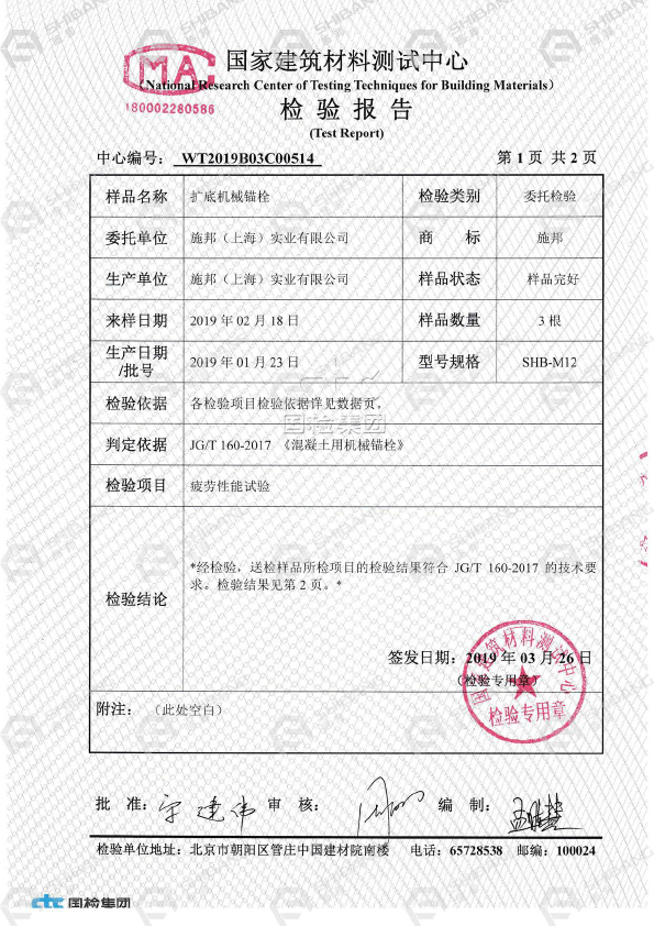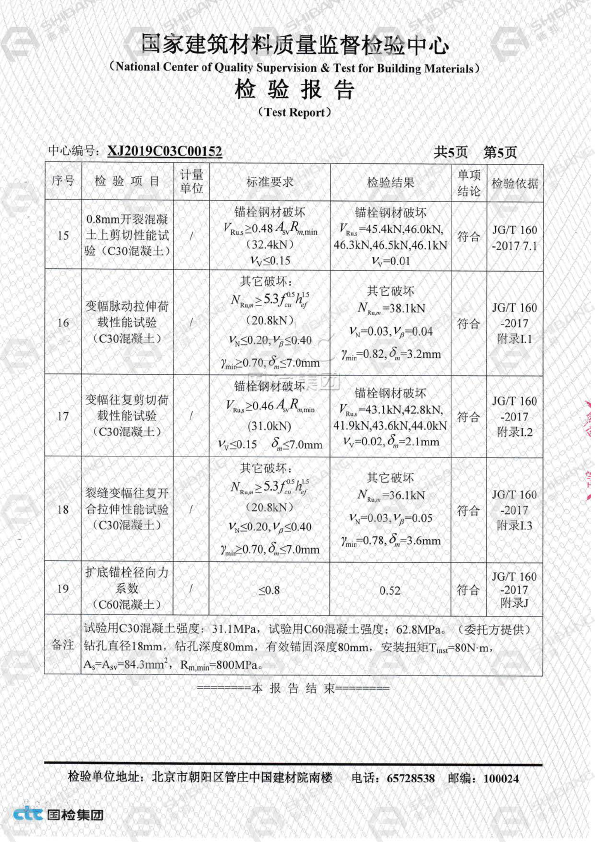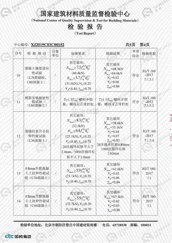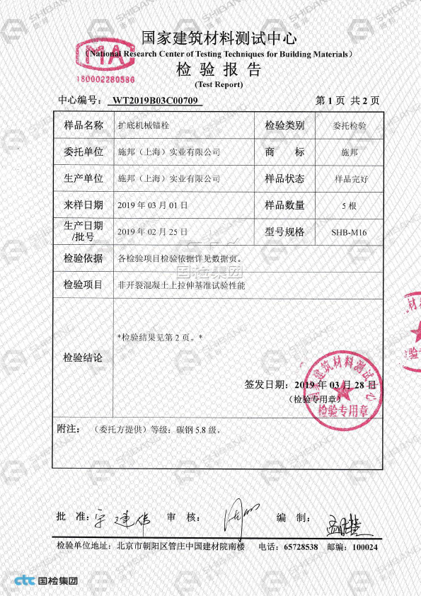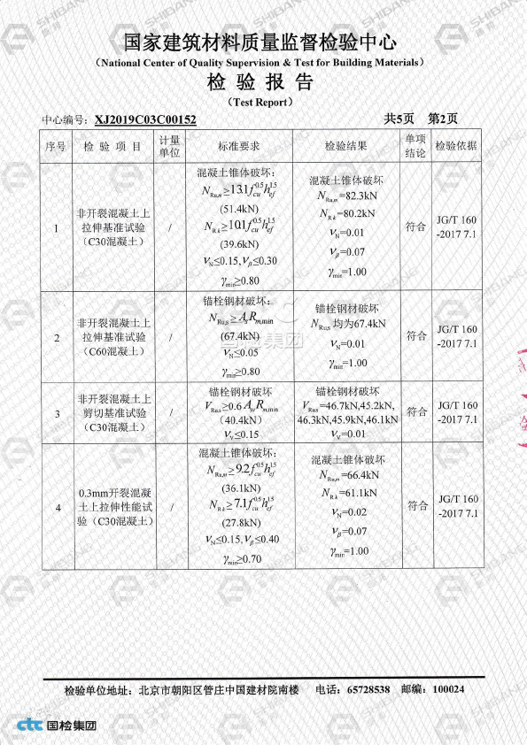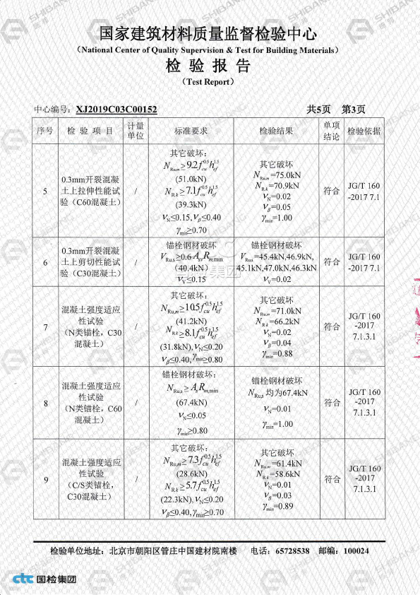表格未列出的產品,請參照《JGJ145-2013混凝土結構后錨固技術規程》按照承載力極限狀態計算方式得出相應數據,具體方案請咨詢施邦 (上海) 實業有限公司技術部