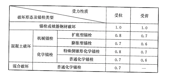 后錨固連接設計,應根據被連接結構類型、錨固連接受力性質及錨栓類型的不同,對其破壞模式進行控制。受拉、邊緣受剪、拉剪復合受力的結構構件及生命線工程非結構構件的錨固連接,應控制為錨栓或植筋的鋼材破壞;膨脹型錨栓及擴底型錨栓錨固連接,不應發生整體拔出破壞或錨桿穿出破壞;植筋連接,不應發生混凝土基材破壞及沿膠筋界面和膠混界面的破壞。通常情況下植筋的破壞形式只有鋼筋破壞一種,而錨栓允許的破壞形式有:錨栓鋼材破壞和混凝土錐體破壞。