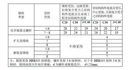 (1)植筋的錨固深度利用計算公式算出后一般都大于15d;(2)錨栓的錨固深度要小于10d;